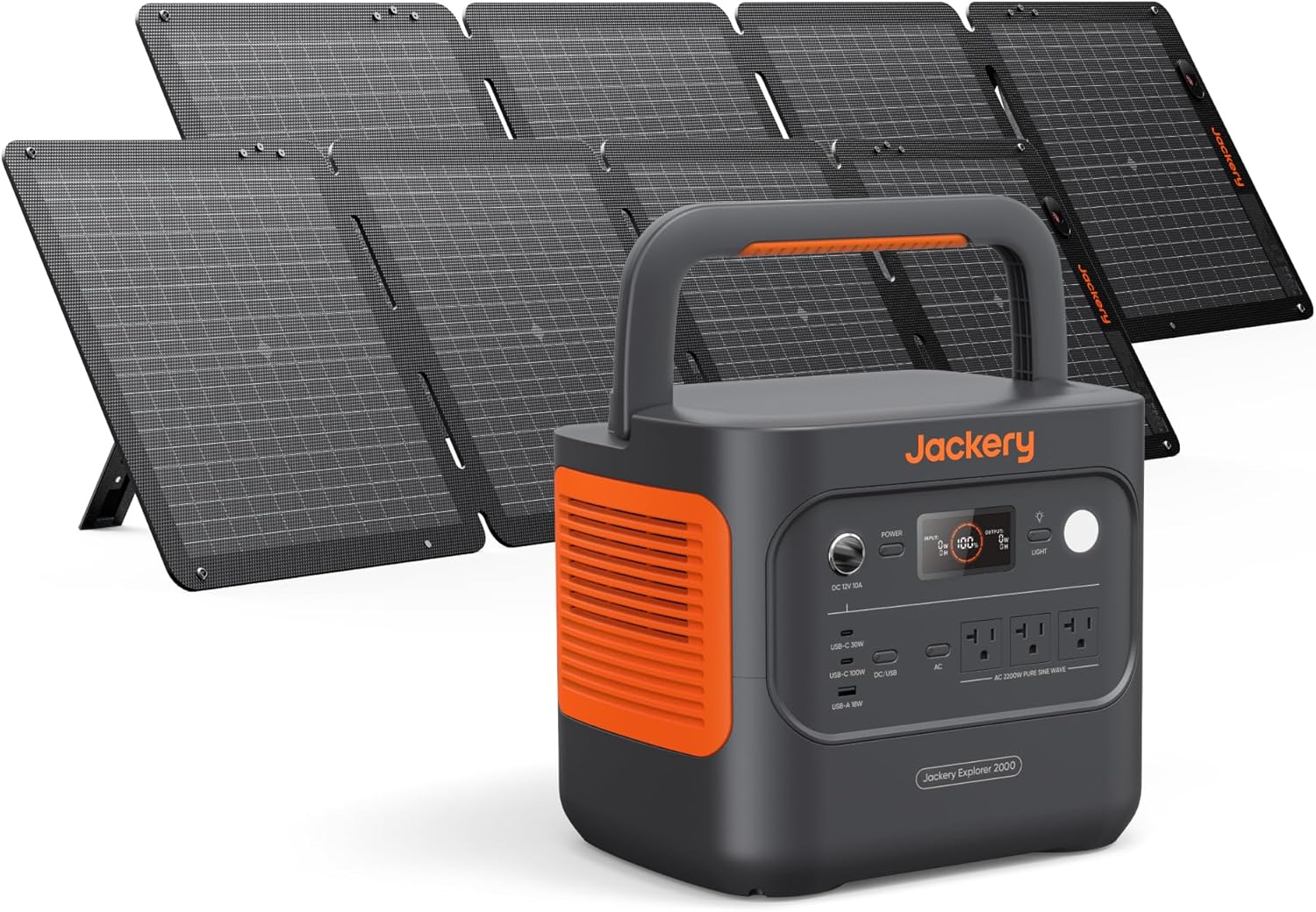 Explorer 2000 v2 Power Station and 2 * 100W Solar Panels 2042Wh LiFePO4 Home Backup Battery 2200W Solar Generator USB-C PD 100W Fast Charging for Emergencies Power Outages Camping