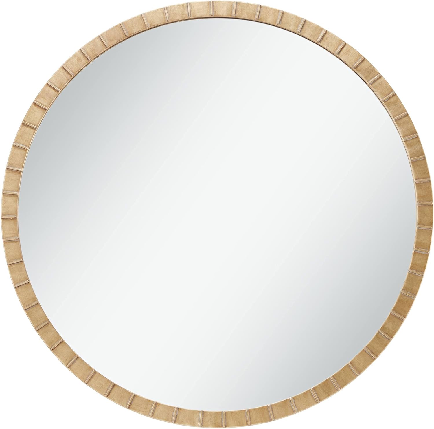 Hkcvv Gracia Round Vanity Hkcvvecorative Wall Mirror Modern Glam Gleaming Warm Gold Leaf Tiled Iron Frame 34" Wide Hkcvvecor for Bathroom Bedroom Living Room Home House Office Entryway