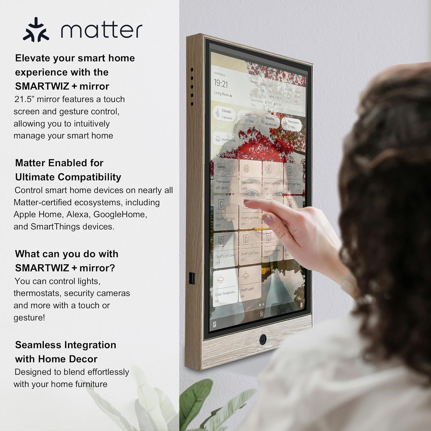 SmartWiz++ Mirror | 21.5'' Smart Home Controller | Matter Compatibility Equipped with Gesture UI