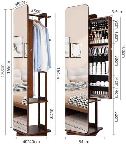 360° Rotating Solid Wood Coat Rack & Full-Length Mirror Jewelry Cabinet 3-in-1 Multi-Functional Organizer for Bedroom & Living Room Large Capacity Storage Solutions