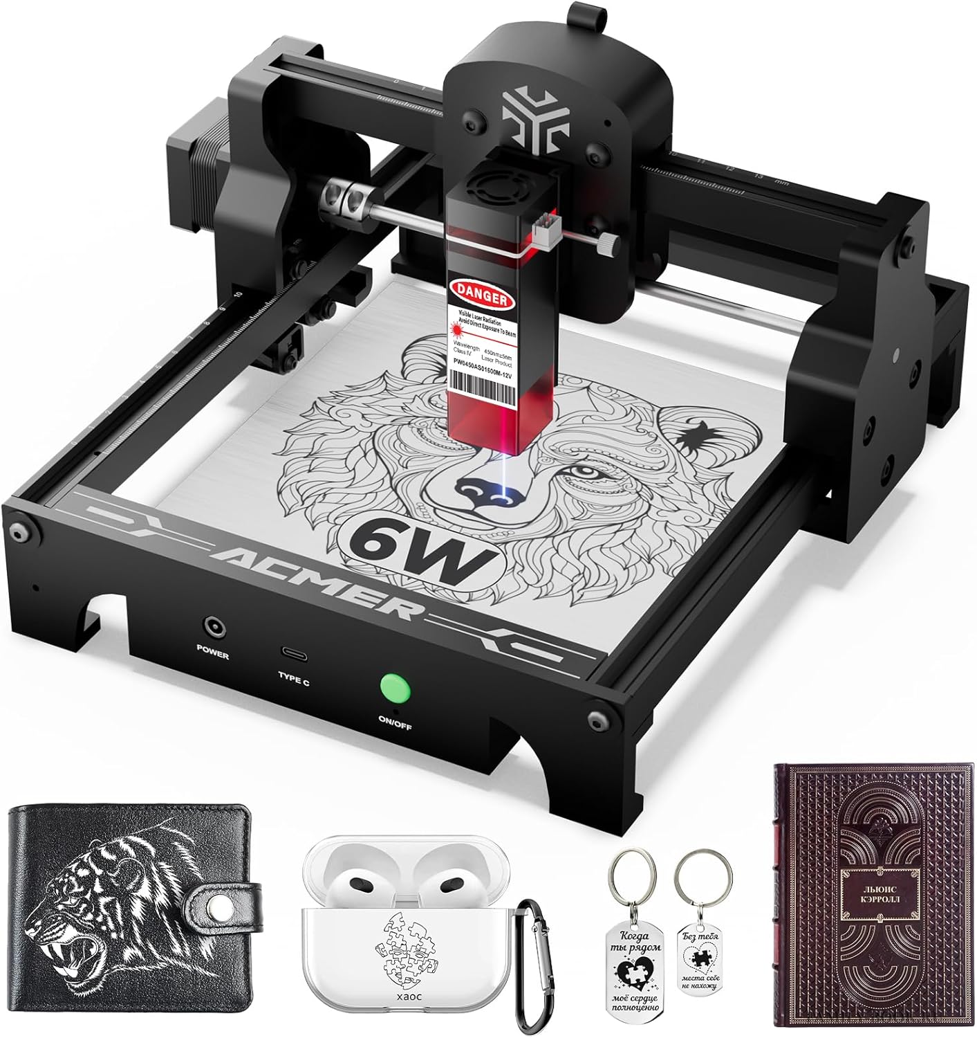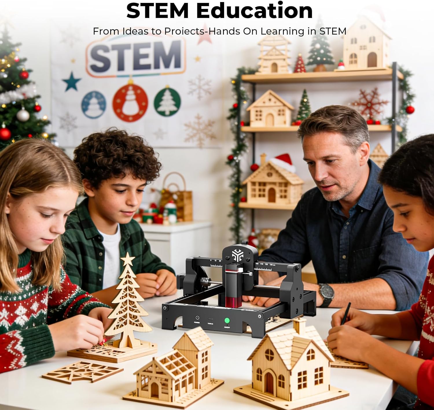 Ray5 mini Laser Engraver 12000mm/min High-Speed Cutter for Wood Metal Acrylic Leather DIY CNC 140x130mm Engraving Area WiFi Emergency Stop Safety (2.5W)