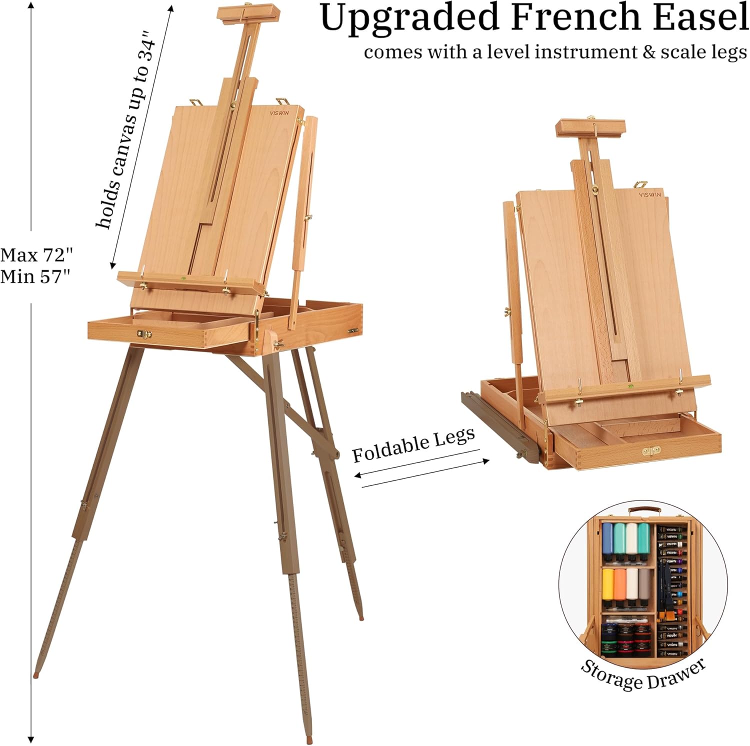 French Easel Acrylic Painting Set Deluxe Artist Supplies Kit w/Coronado Style Wooden Field & Studio Sketch Box Easel Stretched & Panel Canvases Professional Paint Premium Brushes Knives Palettes
