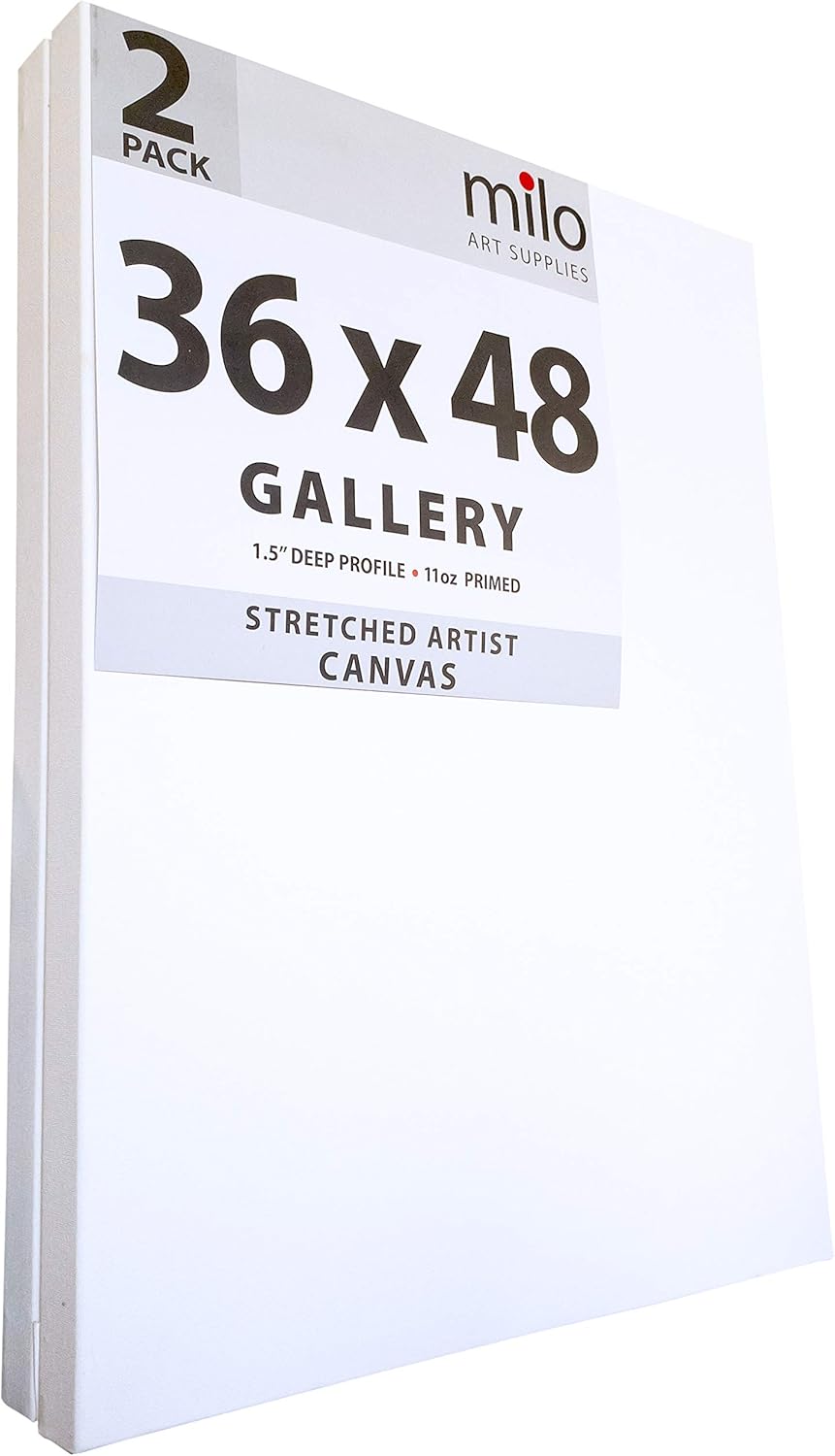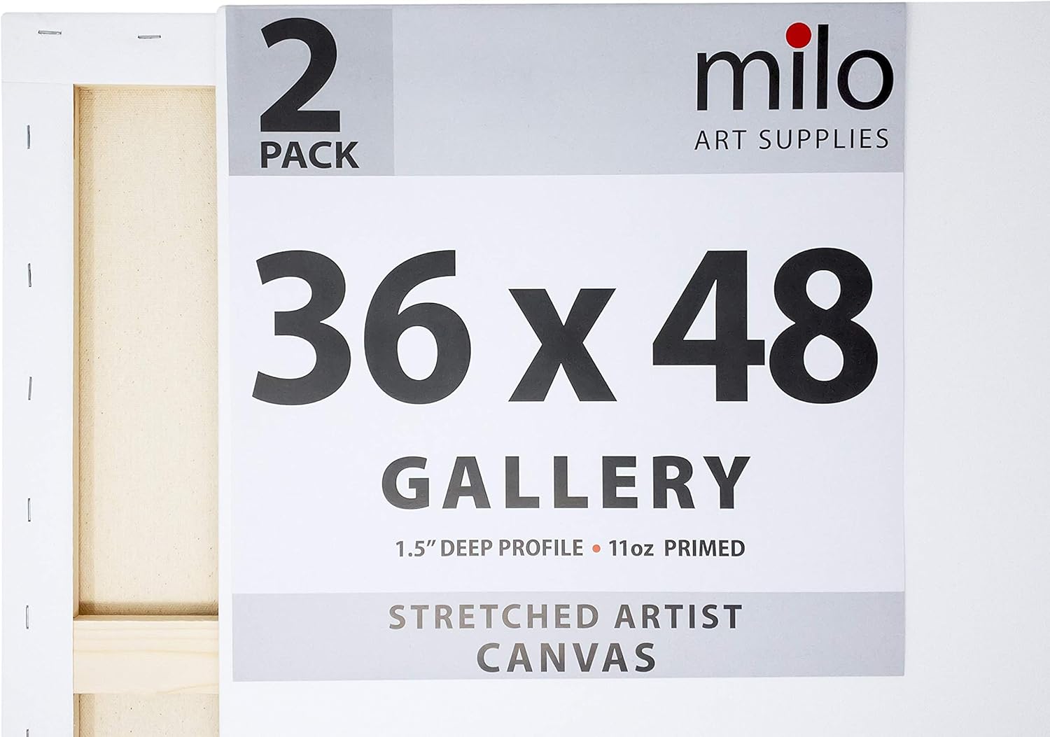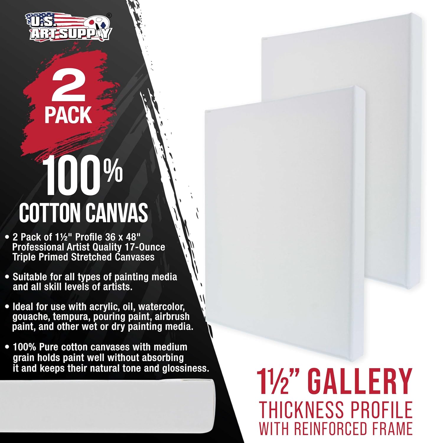 Rectangle Stretched Canvas for Painting 36x48 inch Gallery Depth 1-1/2" Thick 2-Pack - 17oz Acrylic Gesso Triple Primed Professional Artist Quality 100% Cotton - Oil Pouring Paint