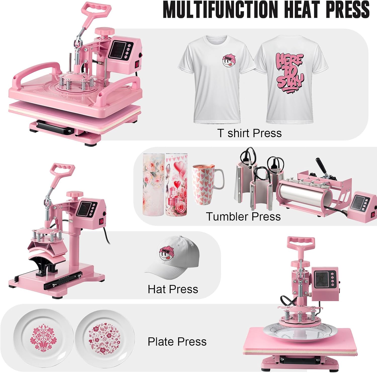 5 in 1 Heat Press Machine 12x15 inch Sublimation Heat Press 360 Swing Away Heat Transfer Digital T-Shirt Pressing with 30OZ 20OZ Tumbler Press Multifunction Combo for Hat Cap Plate