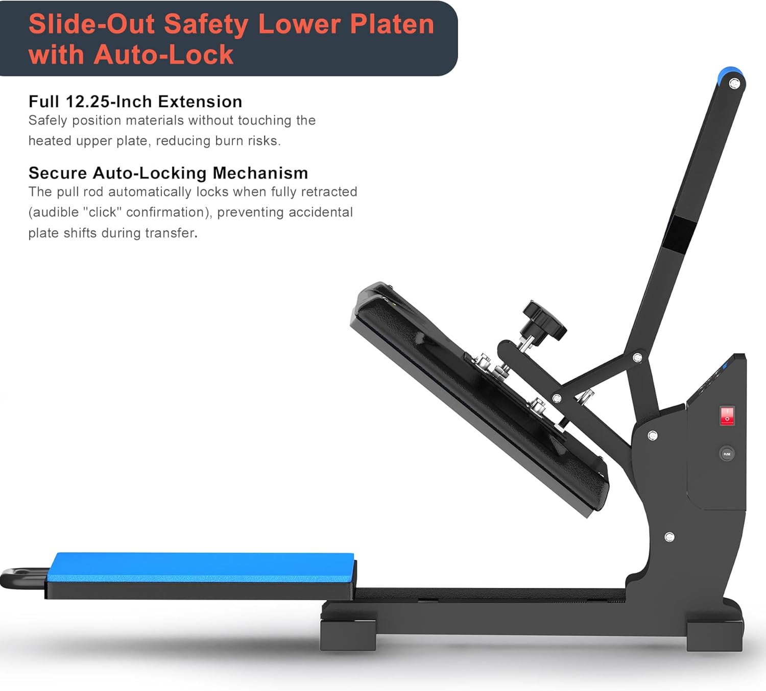 15" x 15" Slide Out (12.25") Heat Press Machine for T Shirts Clamshell Pull Out Lower Platen Industrial-Quality Digital Sublimation Printer for Heat Transfer Vinyl
