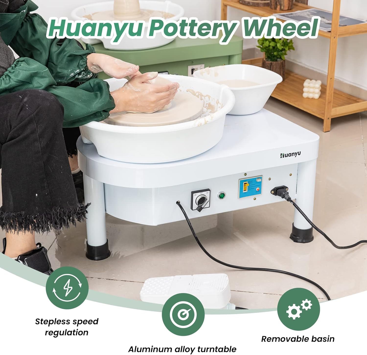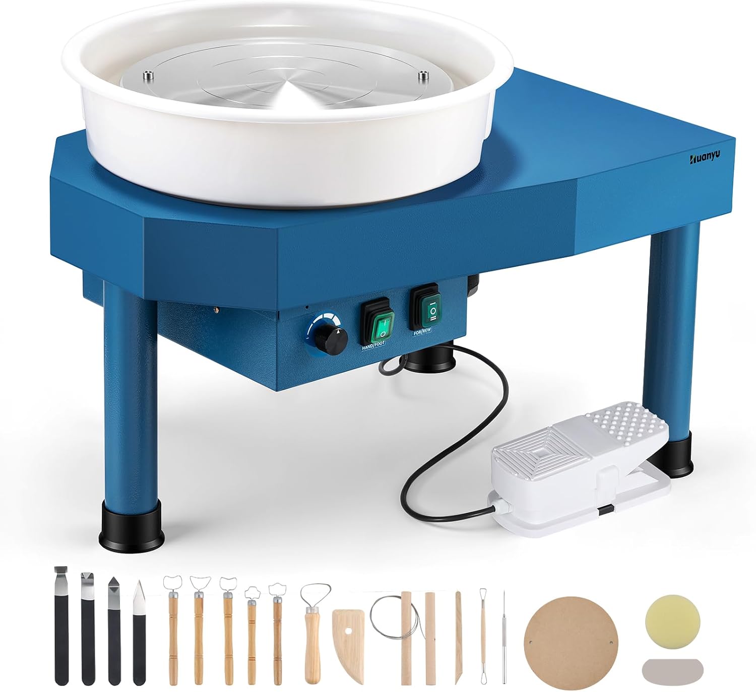 25 cm Pottery Wheel with Foot Pedal 350W Electric Ceramic Machine with Detachable Basin and Bat Tools for Art Work Craft DIY