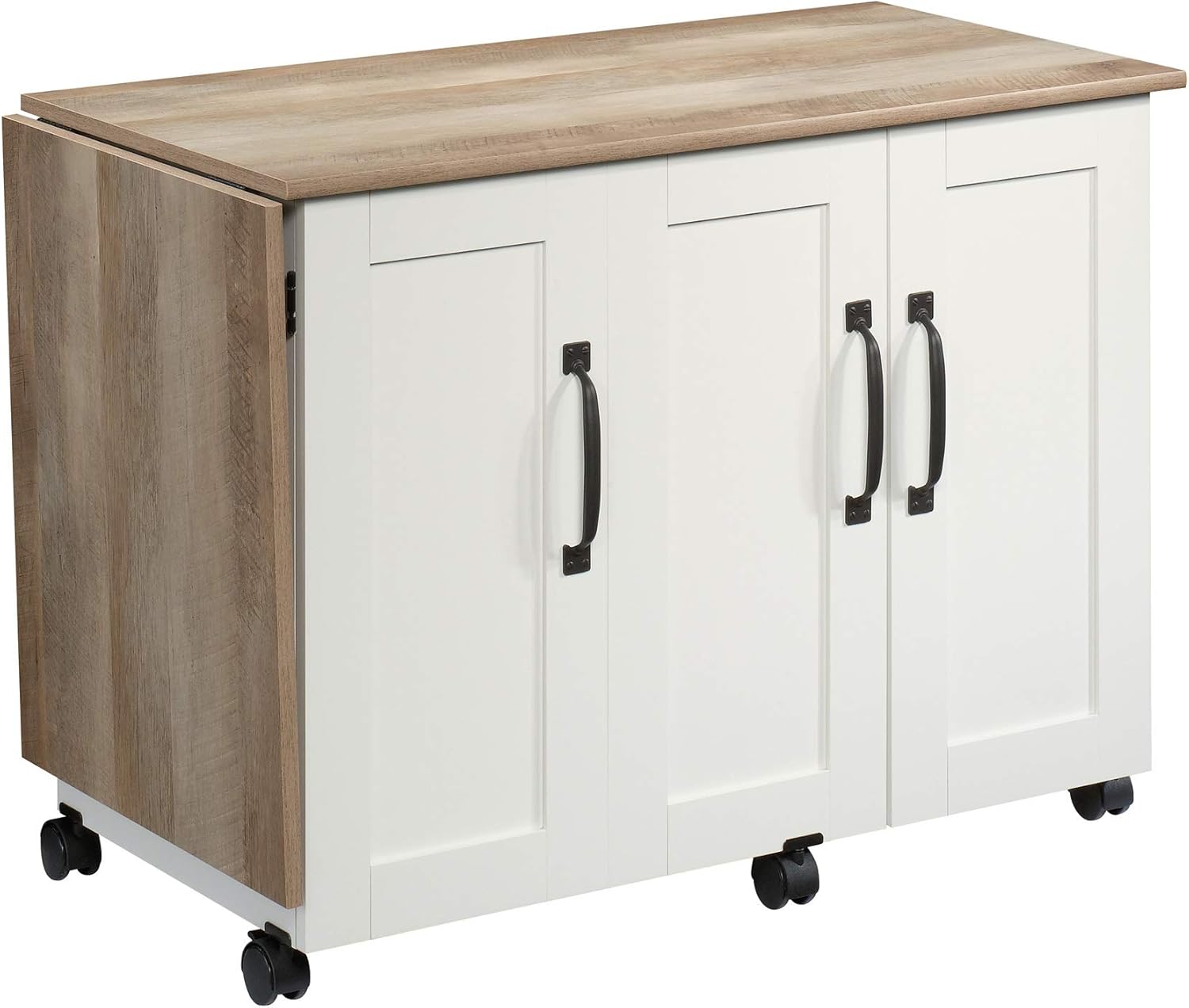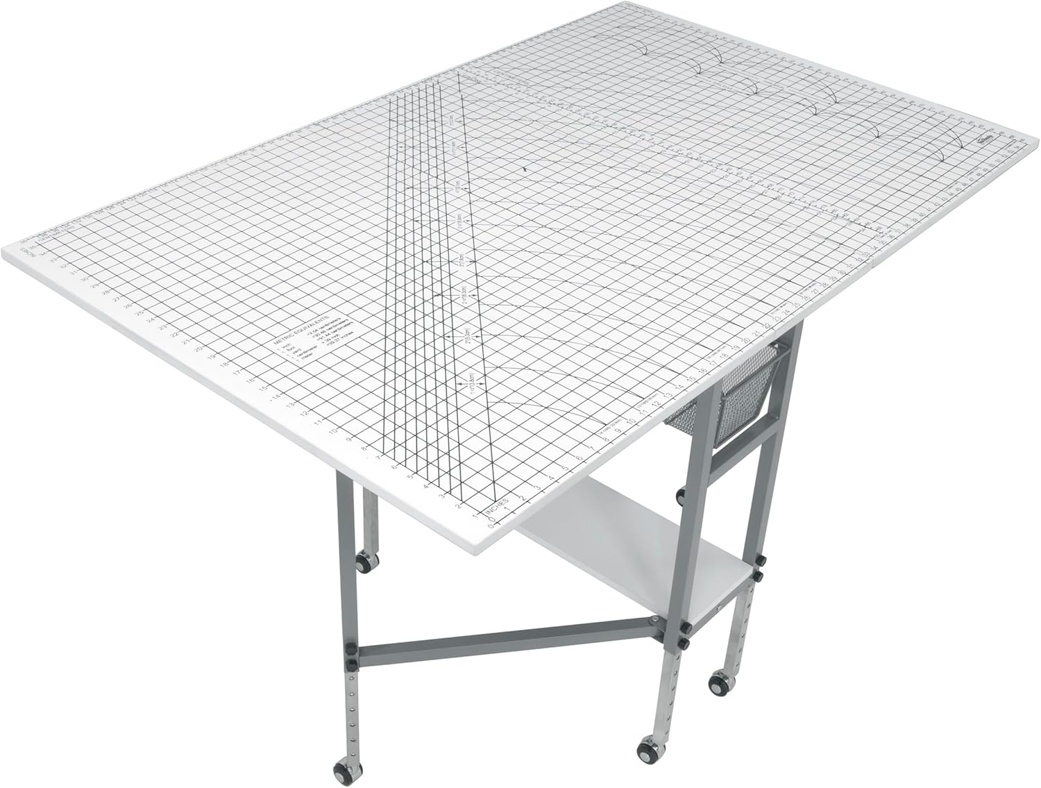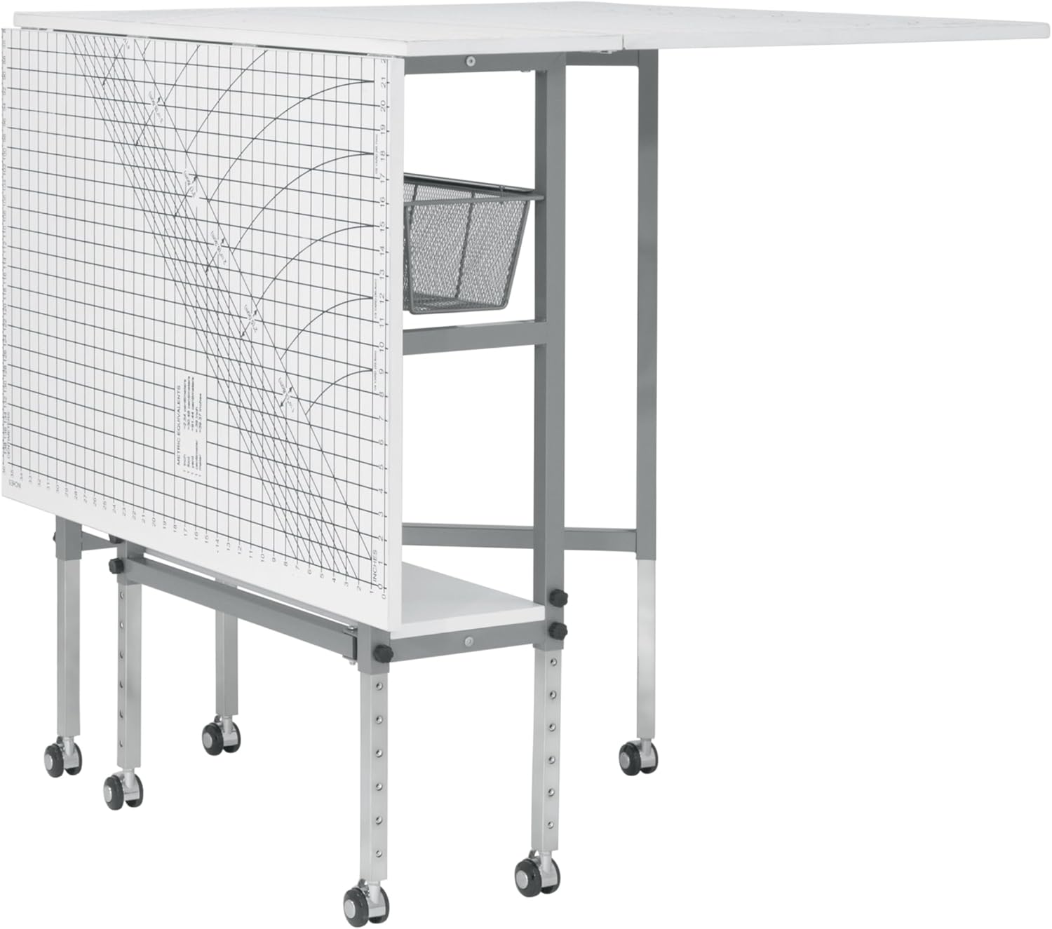 Foldable Hobby and Cutting Grid Table - 58.75" W x 36.5" D White Arts and Crafts Table with Grid Top and Silver Storage Drawers