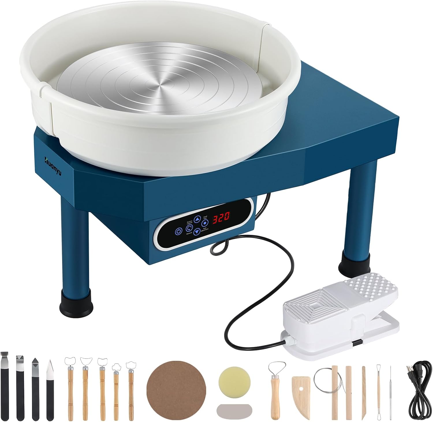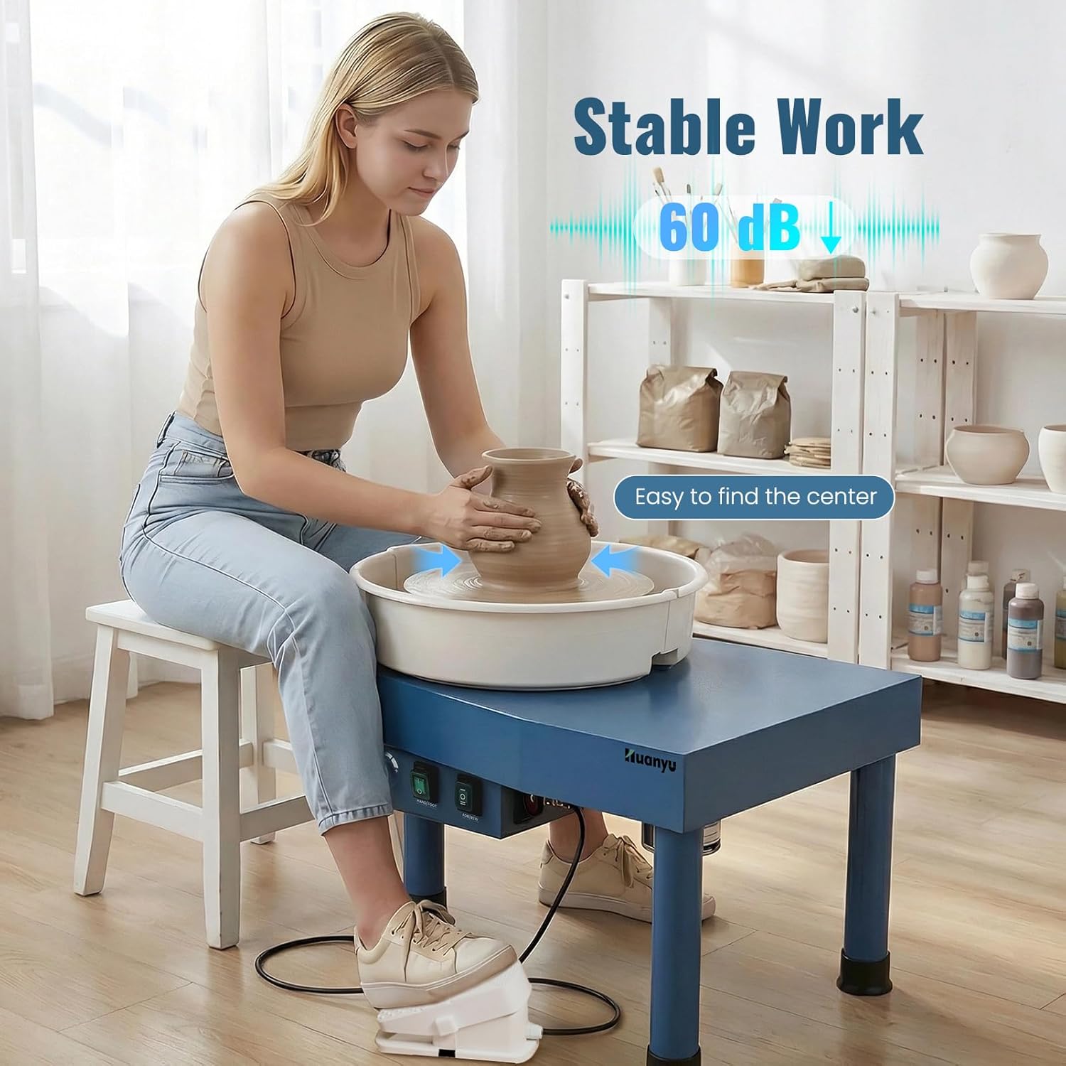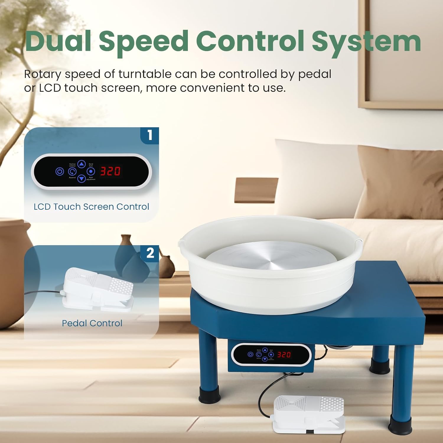 Pottery Wheel Machine for Adults 12" Bat System Manual & Foot Pedal Control Electric Ceramic Wheel Forming Machine Art Clay DIY Sculpting Tool Kit