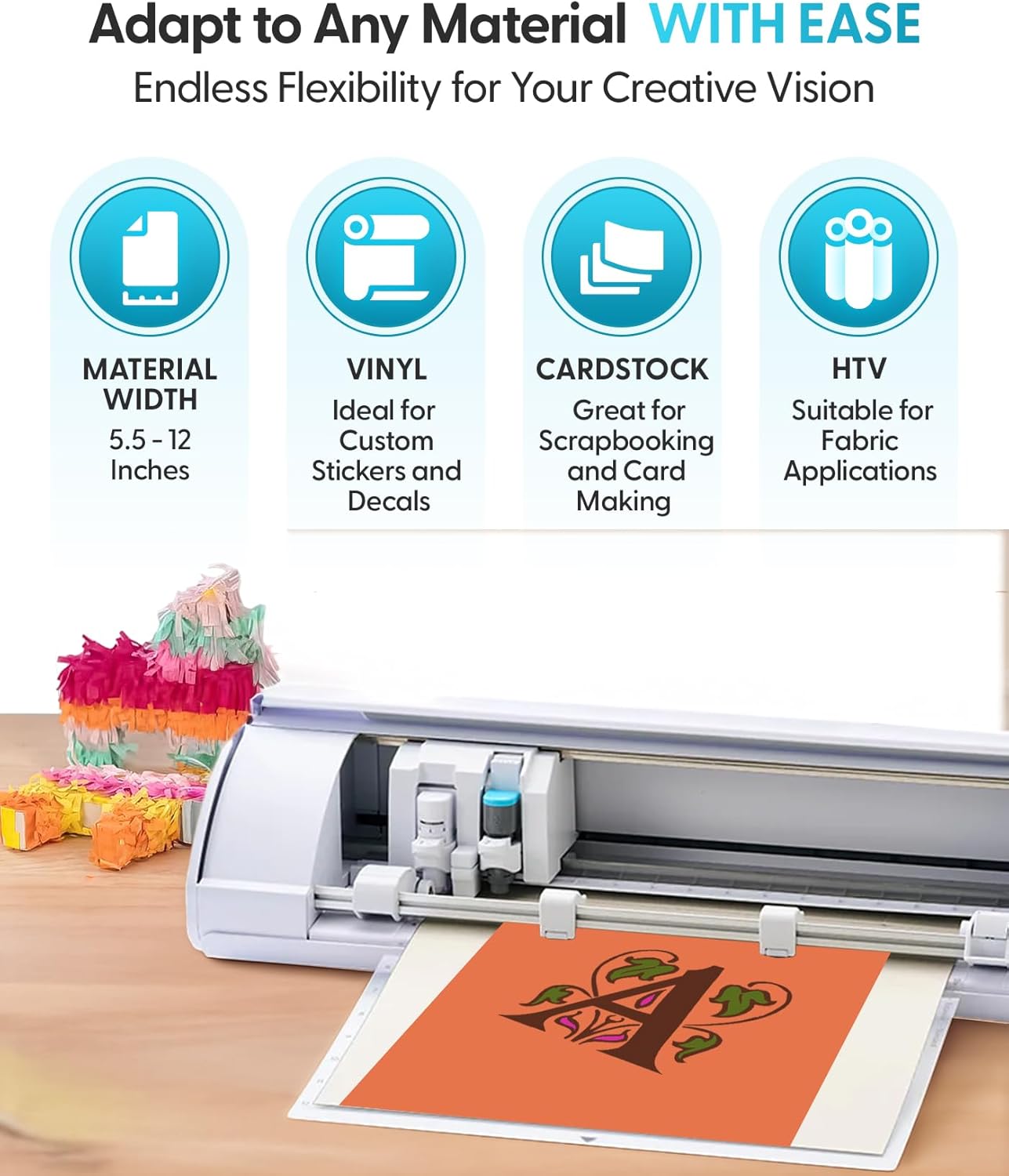 Joy Xtra Machine with Printable Sticker Paper and Vinyl Sampler Bundle - Beginner Sticker and Decal Making Kit with Cutting Machine and Tools -DIY Decor Tumbler Stickers and Laptop Decals