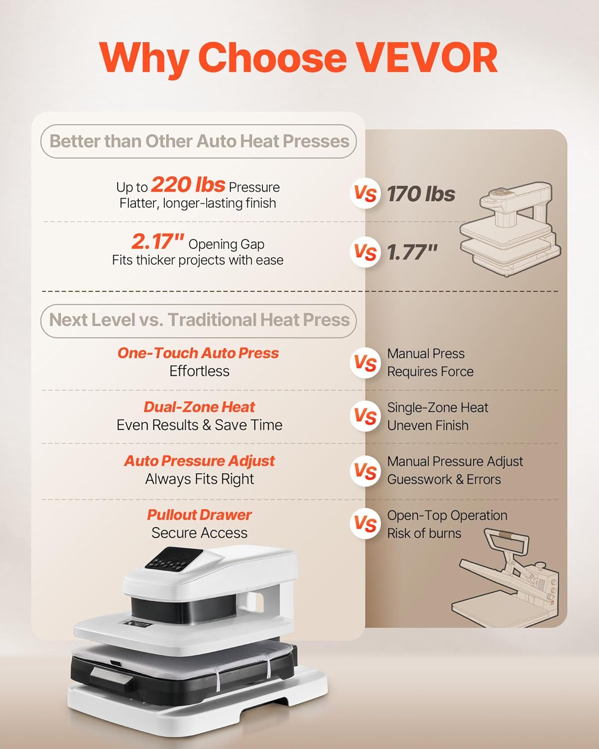 Auto Heat Press Machine 15 x 15 inch T-Shirt Press Machine with Auto Release and Adjustable Pressure Digital Display Rapid Heating for Sublimation Vinyl Heat Transfer Projects White