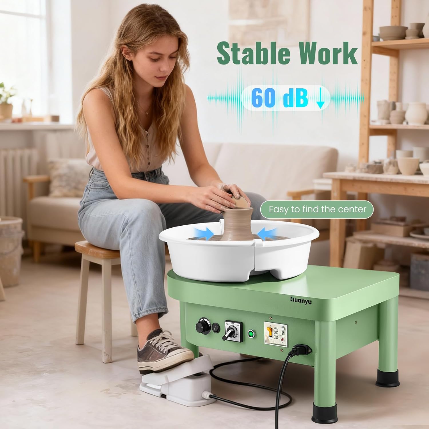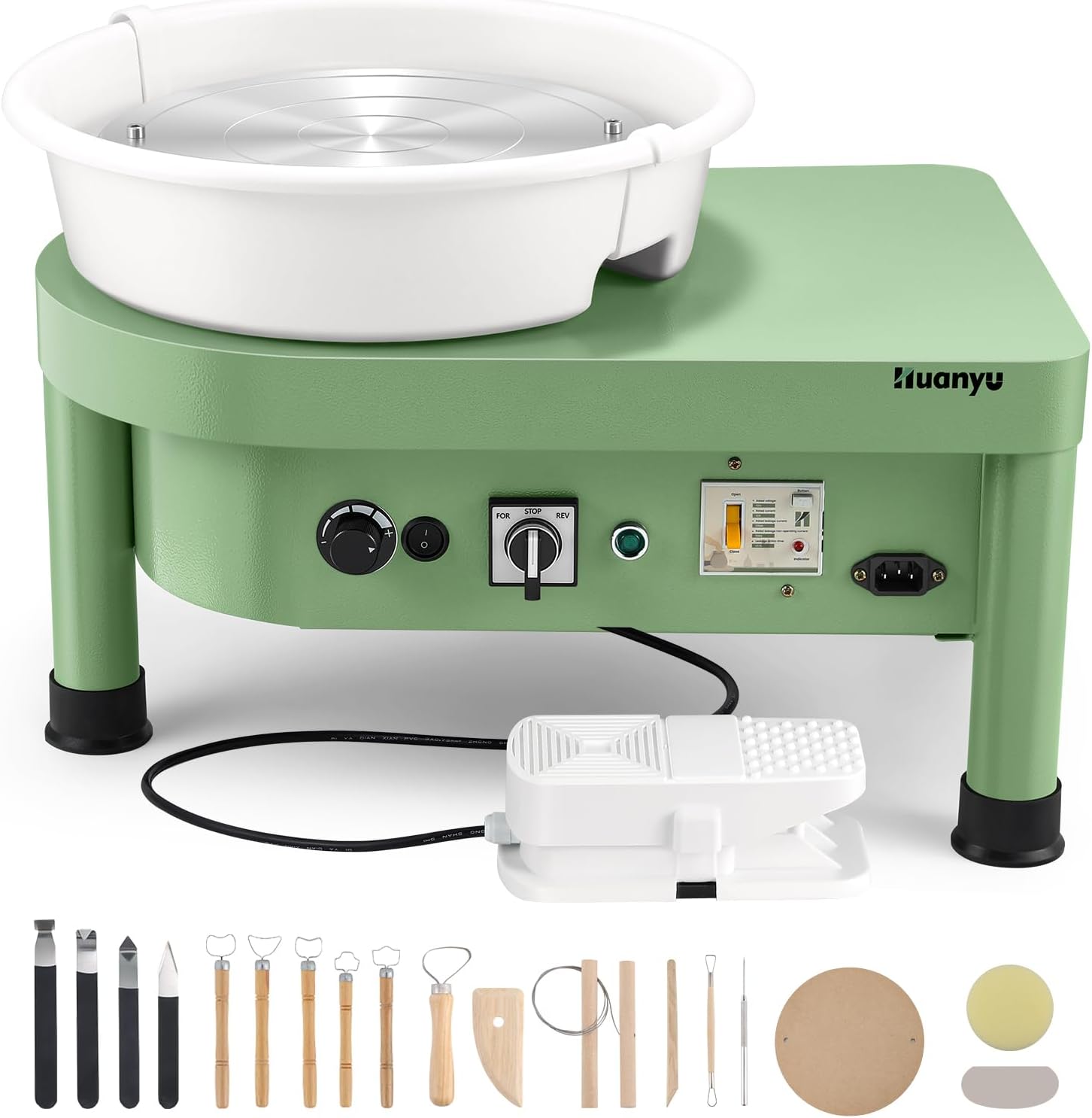 Pottery Wheel Machine 12-Inch Bat System Manual & Foot Pedal Control Electric Ceramic Wheel Forming Machine Art Clay DIY Sculpting Tool Kit (Green)
