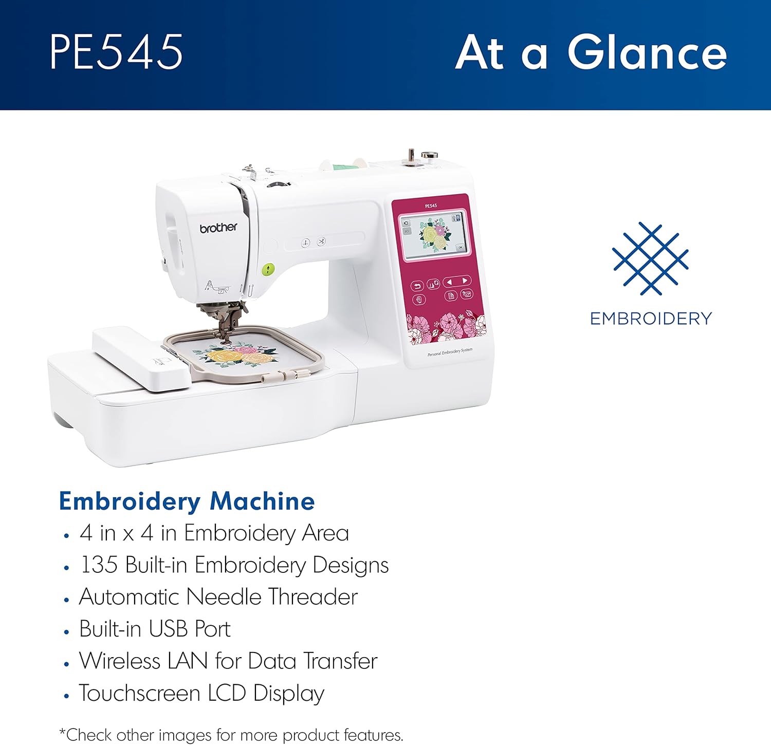 PE545 Embroidery Machine Wireless LAN Connected 135 Built-in Designs 4" x 4" Hoop Area Large 3.7" LCD Touchscreen USB Port 10 Font Styles