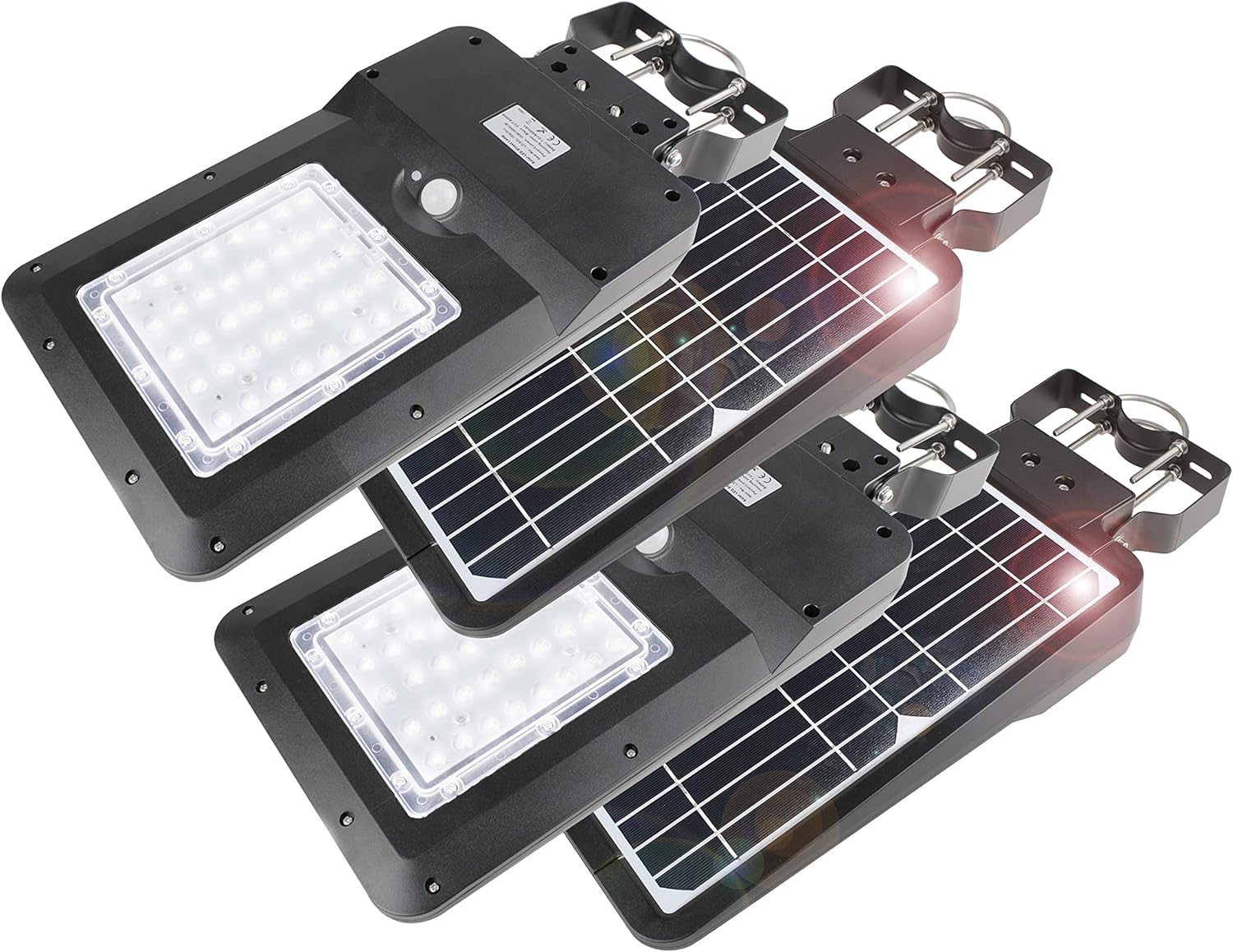 EL8586 1600 Lumen Integrated Solar Street Lamp Security Flood Light Motion Sensor Waterproof Weatherproof Dusk to Dawn Solar LED Light Lamp for Outdoor Garden Yard Path Parking Lot (4 Pack)