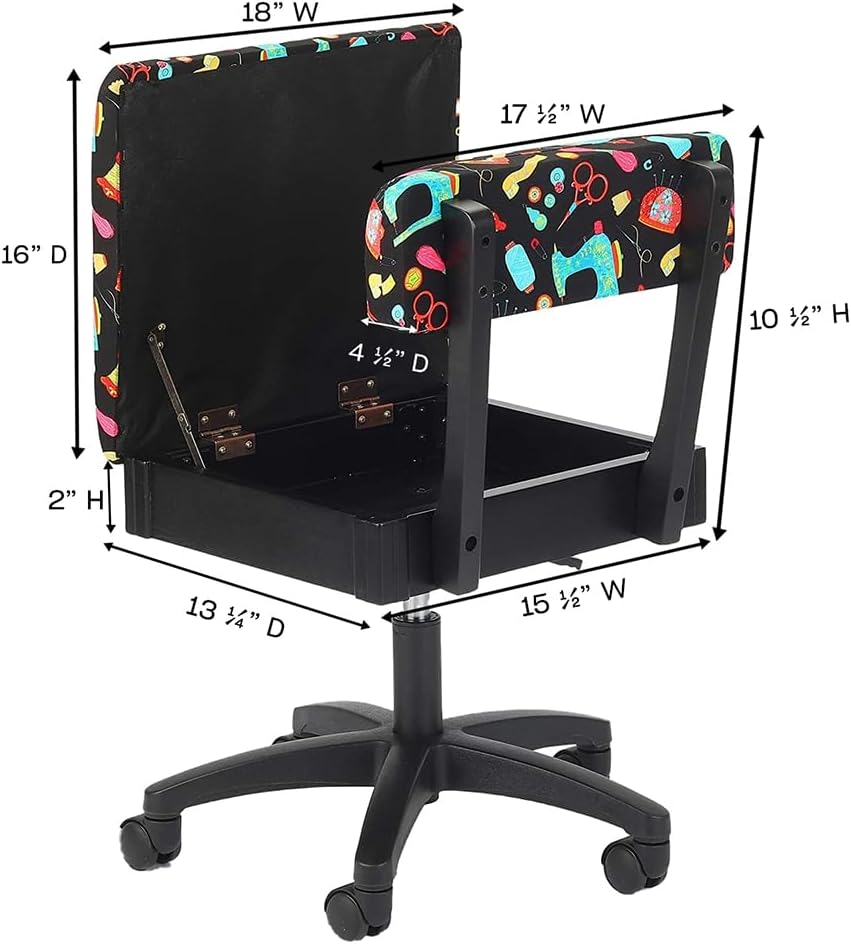 H7013B Adjustable Height Hydraulic Sewing and Craft Chair with Under Seat Storage and Printed Fabric Sewing Notions Print